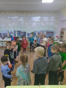 Вот и у нашей группе Подсолнушки в святочную неделю прошло фольклорное развлечение «Коляда», целью которого было знакомство дошколят с традициями и обрядами святочных праздников на Руси. Дети, прошли по группам детского сада, прославляя Рождество. Пели, плясали, веселились и играли в игры. Хозяева – ребята и воспитатели – подавали дорогим гостям сладости. Каждый ребенок был рад преподнести колядующим свой дар — конфетку или печенье. Участие в подобных мероприятиях, дает детям возможность прикоснуться к традициям и обычаям русского народа, самим прочувствовать всю прелесть народных празднеств и гуляний. Это является неотъемлемой частью духовно-нравственного воспитания. Все получили положительные эмоции и хорошее настроение!